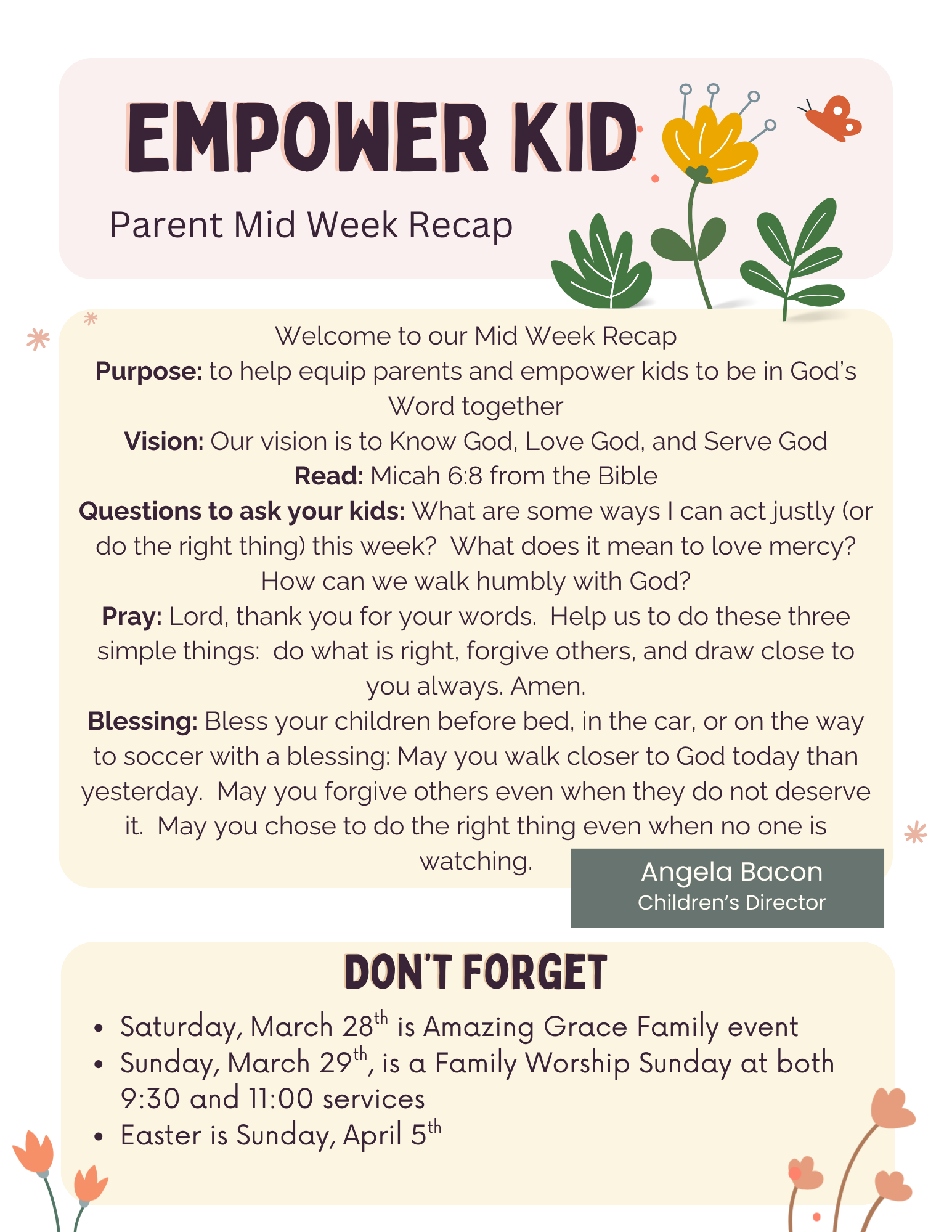 Check out our Empower Mid Week with short devotions, games, activities, or worship ideas to give you that mid week boost you need in God’s Word. The Empower Mid Week will be focused on the lesson from the previous Sunday to help children recap what they studied in Rally.