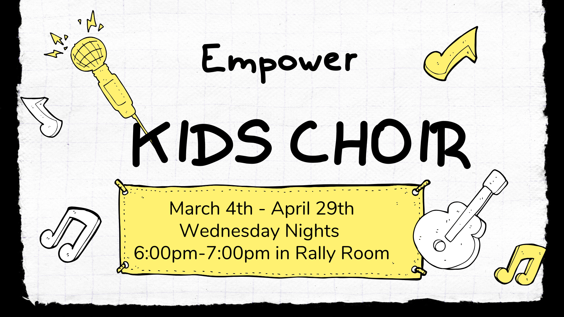 • All students pre-k 4 to 5th grade are invited to join our Kids Choir Wednesday nights beginning March 4th to April 29th. Choir practice is in the Rally Room at Memorial Baptist Church from 6:00pm to 7:00pm. Click the image above to sign up.